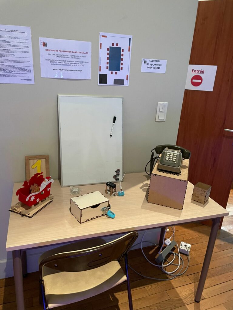 🛠️ En option, la découpe laser devient une partie intégrante de l’escape game. Les participants interagissent directement avec la machine pour produire un élément utile à la mission, renforçant encore l’immersion et l’aspect ludique et créatif de l’aventure.